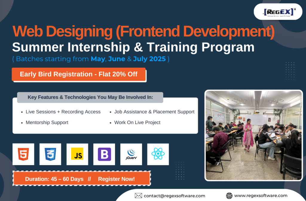 We Provide Best Summer Internship and Training in Jaipur and we offers to students an excellent opportunity to gain practical knowledge and skills in their field of study during the summer break. software engineer internship designed to provide hands-on experience and exposure to real-world challenges in various industries. The summer training helps students to develop their professional network, improve their communication skills, and gain confidence in their abilities. Summer Internship and Training in Jaipur include project-based learning, mentorship, industry experts, teamwork, practical experience, and skill development. Overall, the Internship for college students in Jaipur can be a great stepping stone for students to kick-start their careers.